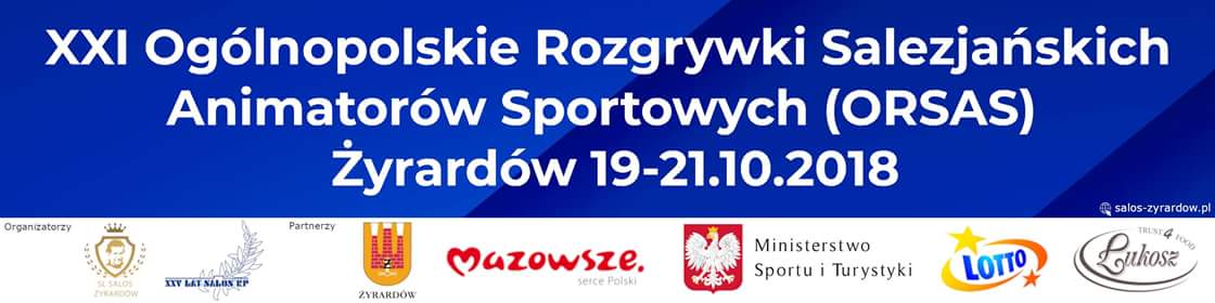 Program XXI Ogólnopolskich Rozgrywek Salezjańskich Animatorów Sportowych (ORSAS) Żyrardów, 19 – 21 października 2018